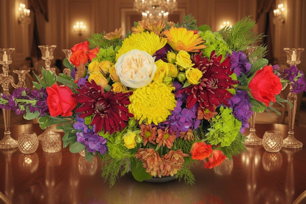 This Thanksgiving flower centerpiece brings the warm beauty of autumn to your table. Designed with seasonal blooms, rich fall colors, and natural textures, it adds a welcoming glow to your celebration.