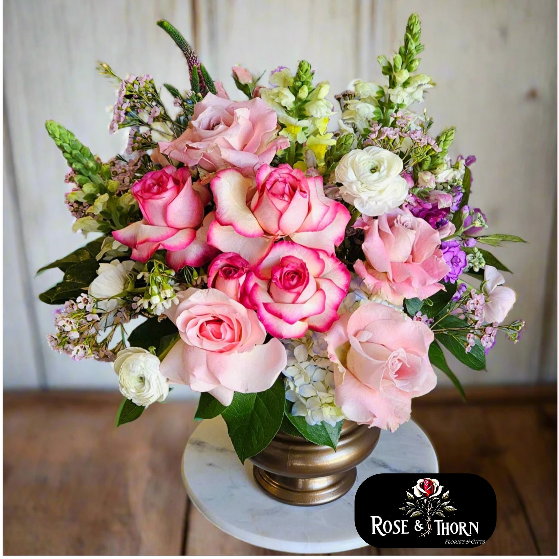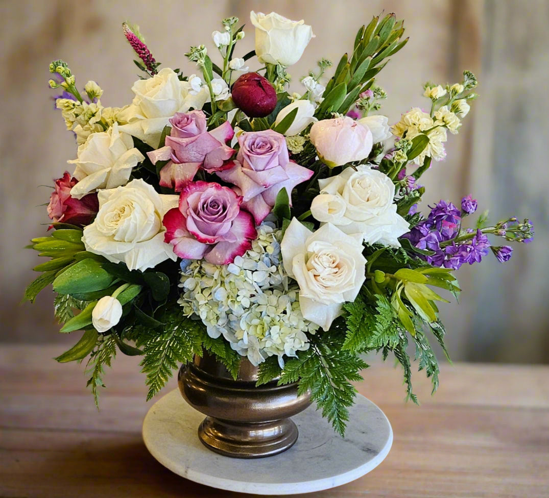 In some instances, our photo may represent an overall theme or look and include a one-of-a-kind vase which cannot be exactly replicated. Although the actual bouquet may not precisely match the photo, its temperament will. Occasionally, substitutions of flowers and/or containers happen due to weather, seasonality and market conditions which may affect availability. If this is the case with the gift you’ve selected, we will ensure that the style, theme and color scheme of your arrangement is preserved and will only substitute items of equal value or higher value. If any design elements are of major importance to your order, please include them in the florist instructions at checkout or contact us to ensure availability.